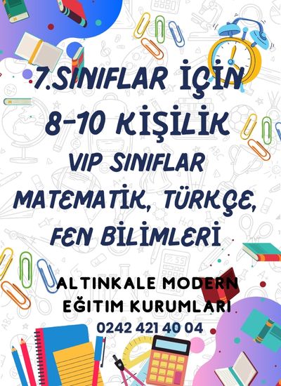 Döşemealtı Özel Eğitim Kurumu 7.Sınıflar için 8-10 kişilik VIP sınıflar matematik, türkçe, Fen bilimleri